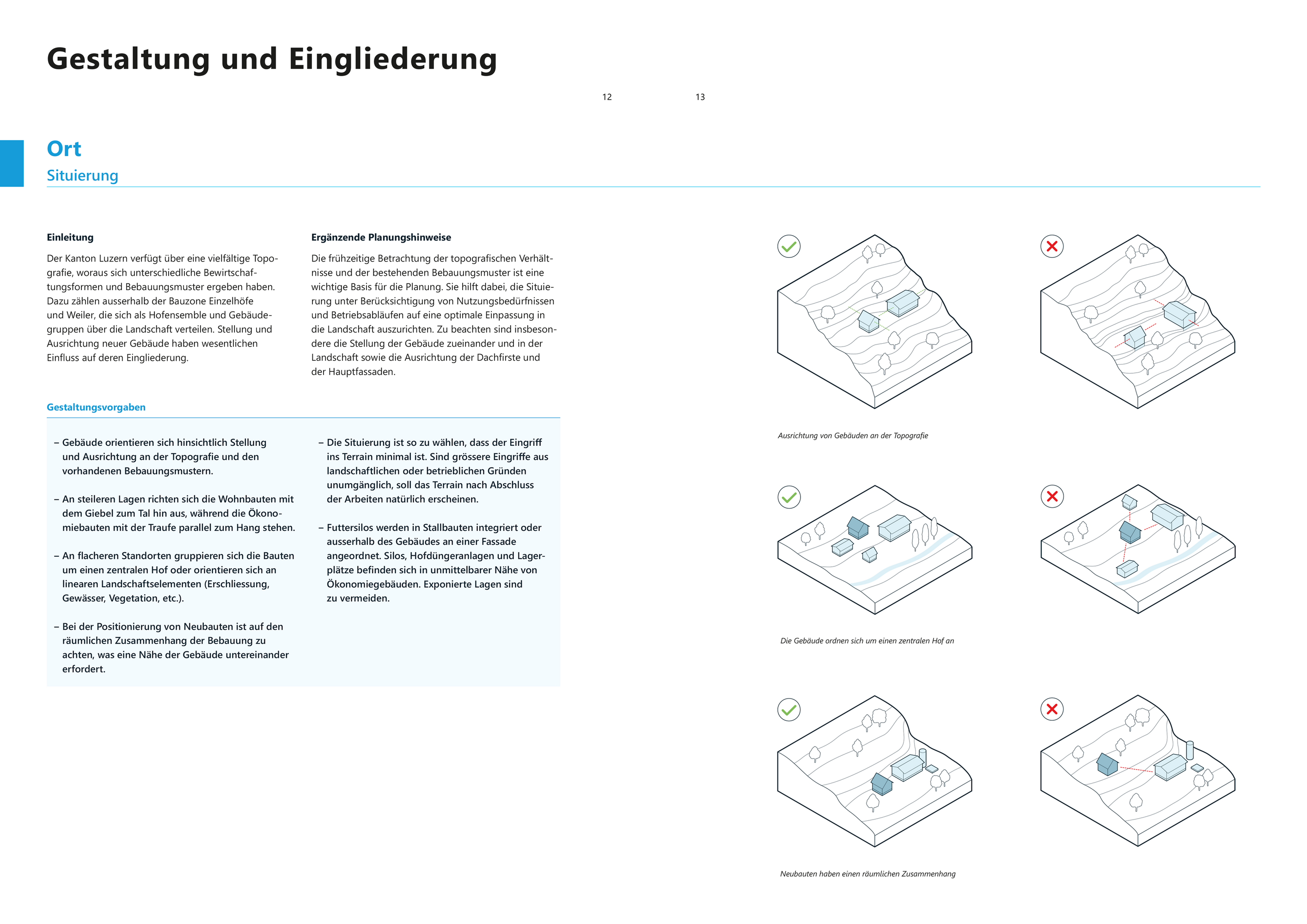 Die inhaltliche Erarbeitung erfolgte in enger Zusammenarbeit mit relevanten Akteur:innen aus Praxis. Beteiligt waren unter anderem der Luzerner Bäuerinnen- und Bauernverband (LBV), der Verband der Luzerner Gemeinden (VLG), die Vereinigung Luzernischer Gemeindeingenieure (VLGI), der Innerschweizer Heimatschutz (IHS) sowie die Zentralschweizer Sektion des Schweizerischen Ingenieur- und Architektenvereins (SIA). Der breit abgestützte Dialog ermöglichte die Entwicklung praxisnaher und fundierter Beurteilungskriterien.